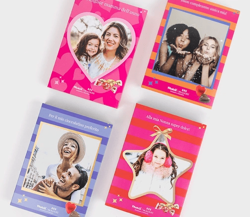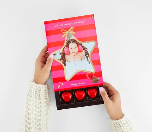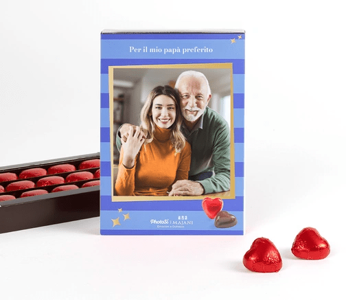 The Majani chocolate box , personalized with your photo and text, is the sweetest gift ever! You can choose from a variety of designs. Give these chocolate boxes as a gift for Christmas , a birthday, or to celebrate a special occasion. Sweetness is guaranteed!